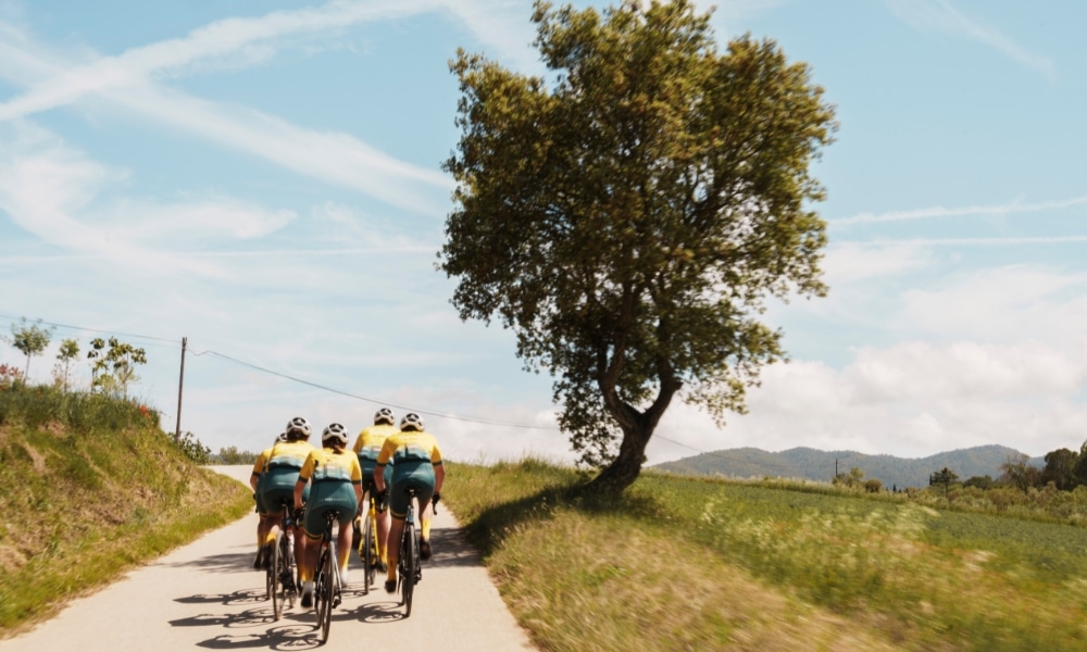 Després de fer el cim, tocava baixar i recuperar-se, perquè metres després arribaria un altre port tan emblemàtic com és el dels Àngels, segon moment clau de la prova. Aquesta zona de la província de Girona és una de les preferides pels equips professionals per fer la pretemporada. Per tant, sobra dir que, de nou, el RACC HolaBICI Team tenia un repte. En alguns trams l’equip es va estirar, però en cap moment es va trencar. És més, si cal destacar alguna cosa és la companyonia amb la qual van afrontar el port per arribar tots i totes amb pocs segons de diferència. Aquí es van haver d’aturar per recuperar l’alè i revisar la pressió dels pneumàtics. Tot això va ser possible gràcies al vehicle d’assistència Skoda Enyaq.